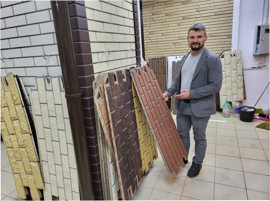 В шоуруме представлены десятки вариантов сайдинга и фасадных панелей различных цветов, фактур и производителей.