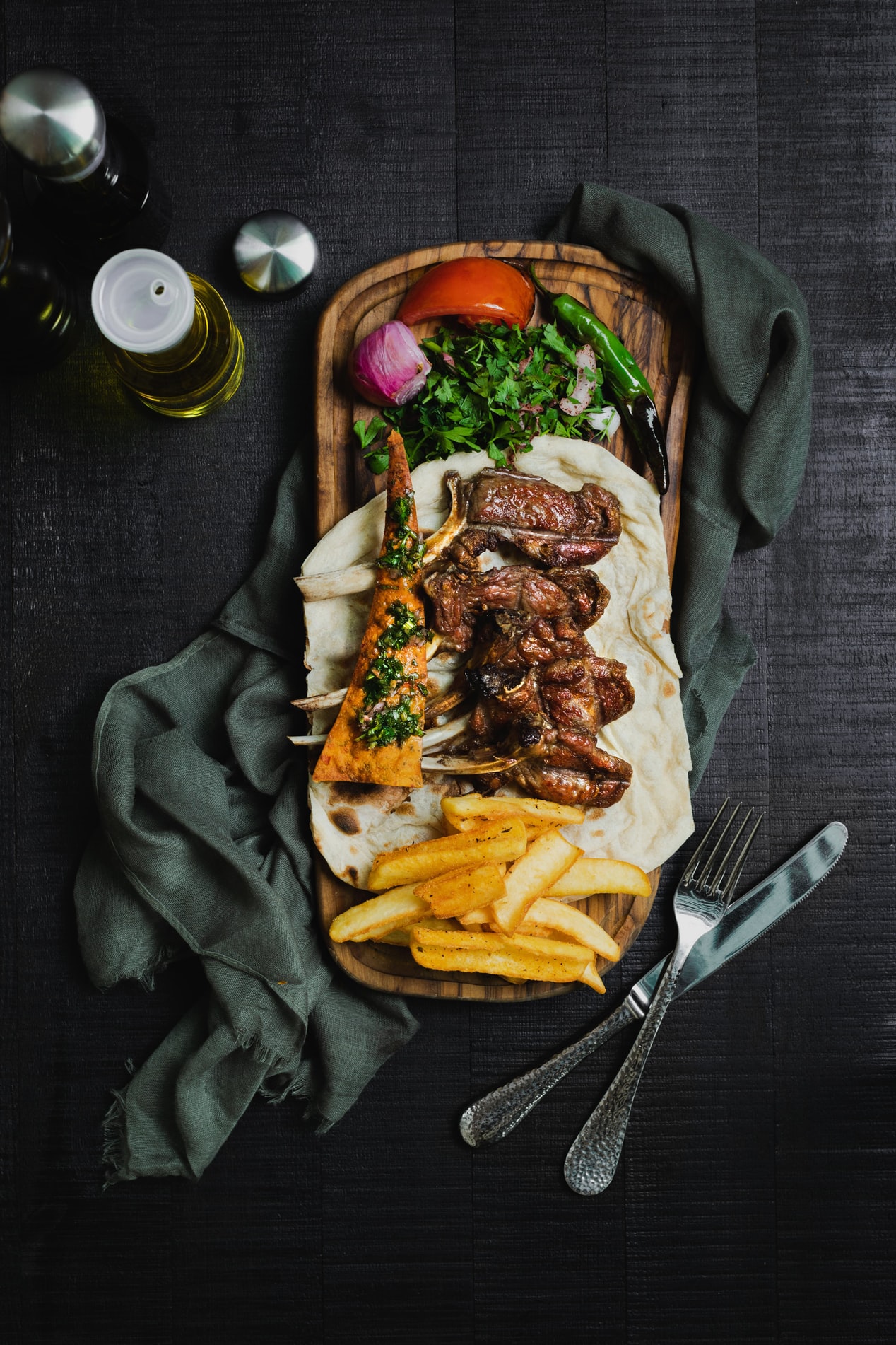 с перечным соусом, микс-салатом и печёными овощами